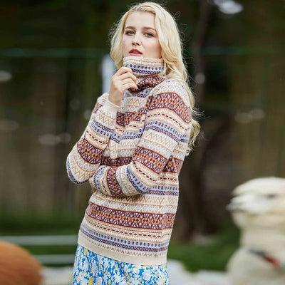 Maglione a collo alto da donna in 100% lana merino a fantasia