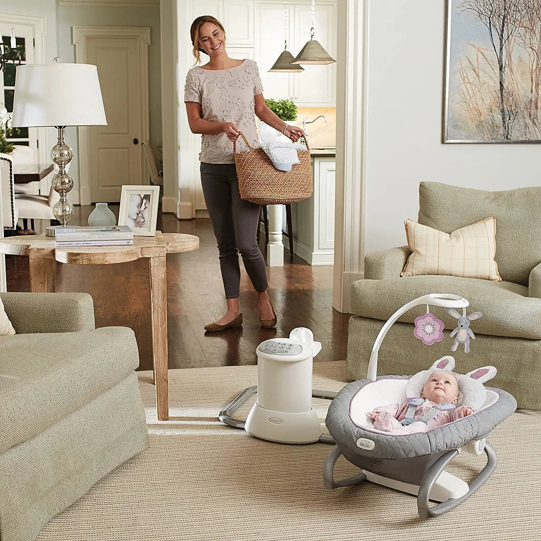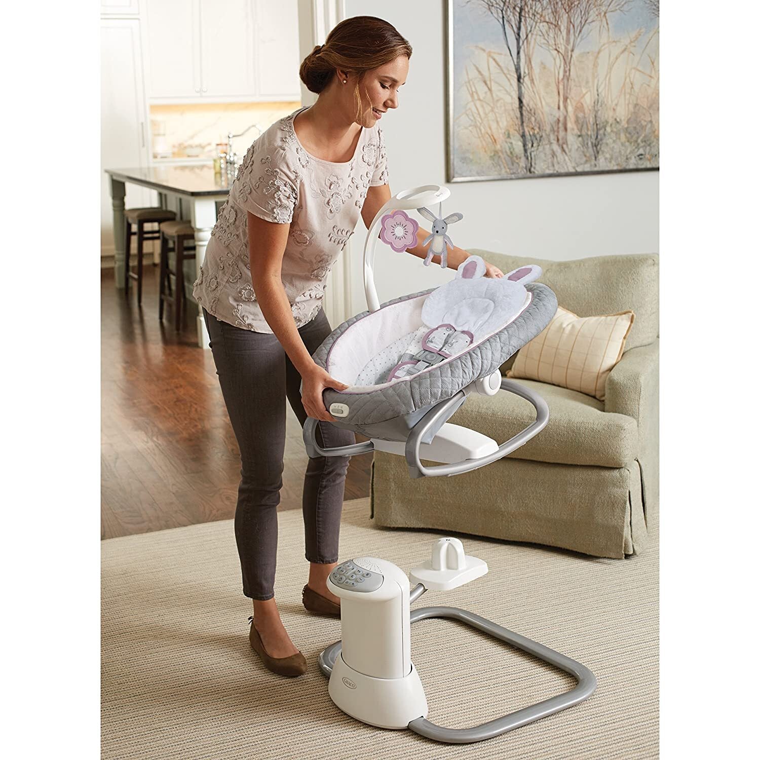 L'altalena per bambini Graco® Soothe My Way™ con dondolo rimovibile è dotata di 8 movimenti calmanti in 2 direzioni, per 16 modi di calmare il bambino. Il design 2 in 1 offre un seggiolino per altalena che si trasforma in un dondolo rimovibile da utilizzare in tutta la casa. I tessuti morbidi e il supporto per il corpo rimovibile garantiscono un maggiore comfort per il vostro piccolo.