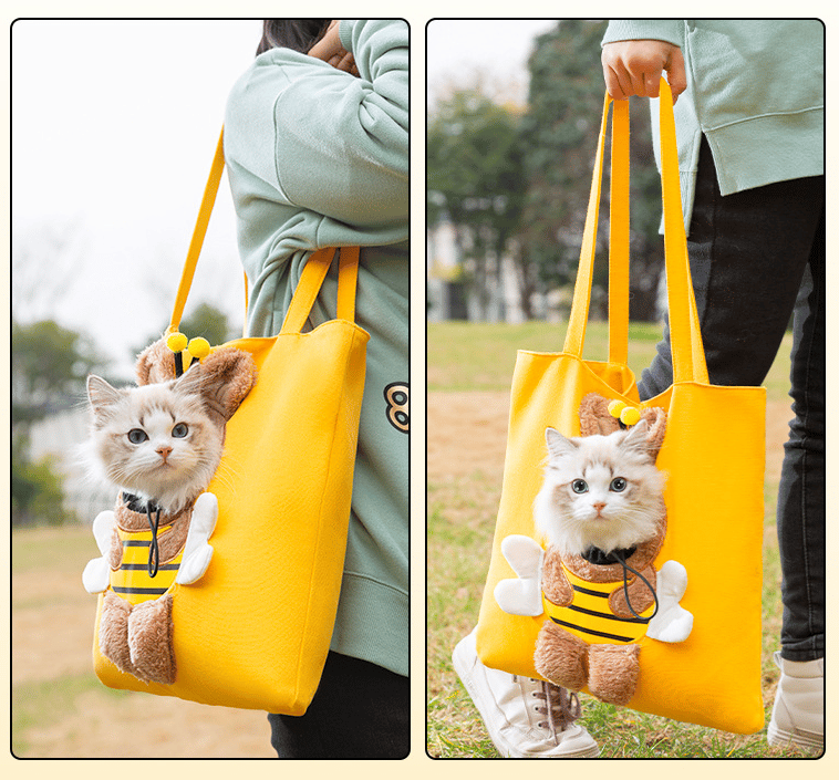 2023 Borsa di tela per animali domestici Borsa da viaggio a forma di ape per piccoli gatti