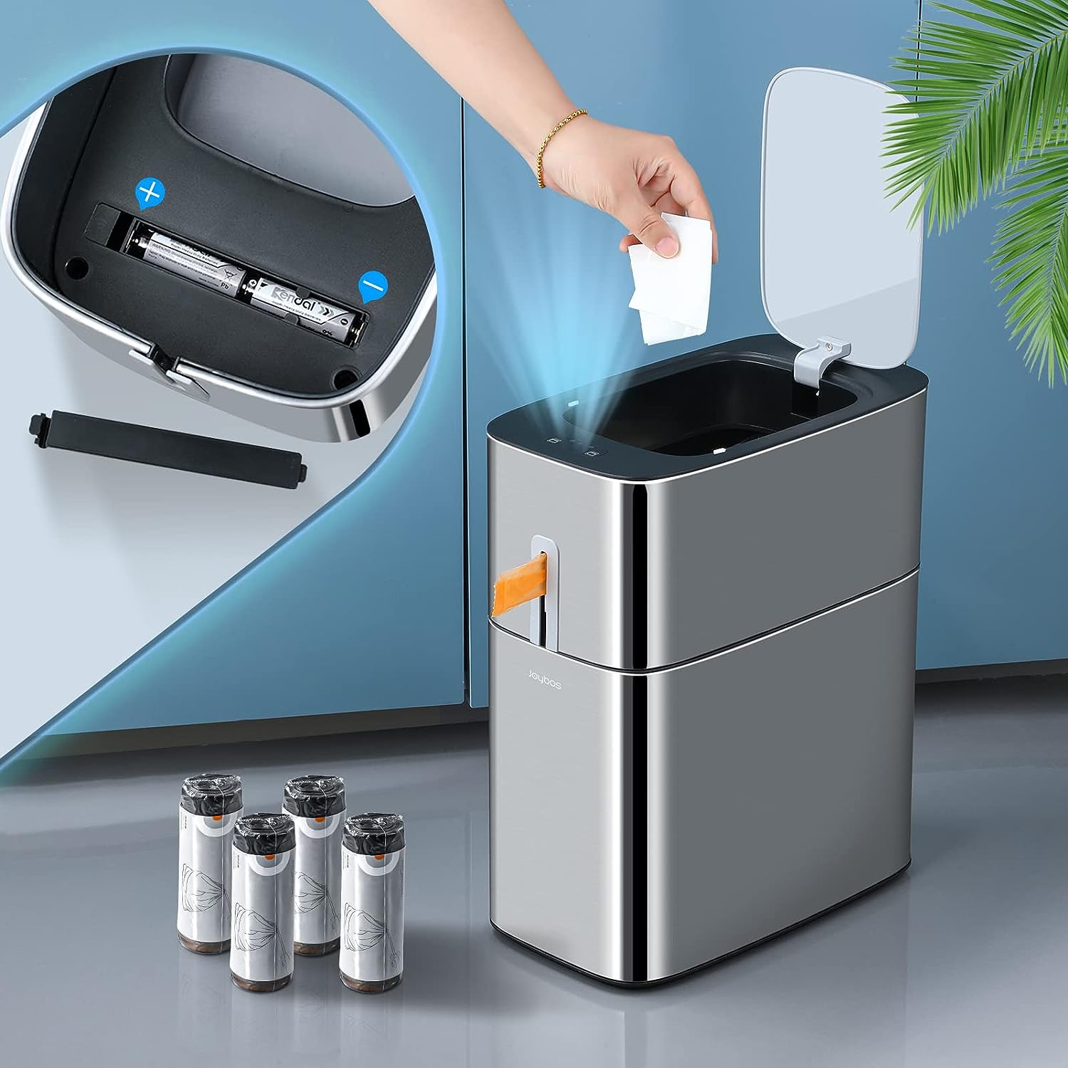 IGIENICO E SENZA ODORI- Il funzionamento touchless e il coperchio ben sigillato aiutano a contenere gli odori, impedendo la fuoriuscita di odori sgradevoli e mantenendo un ambiente pulito e igienico.