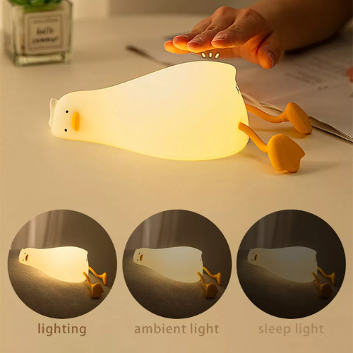 Toccando delicatamente il corpo in silicone di Laying Duck, è possibile regolare i livelli di luminosità. Inoltre, è possibile aggiungere una modalità che fa spegnere la lampada dopo 30 minuti.