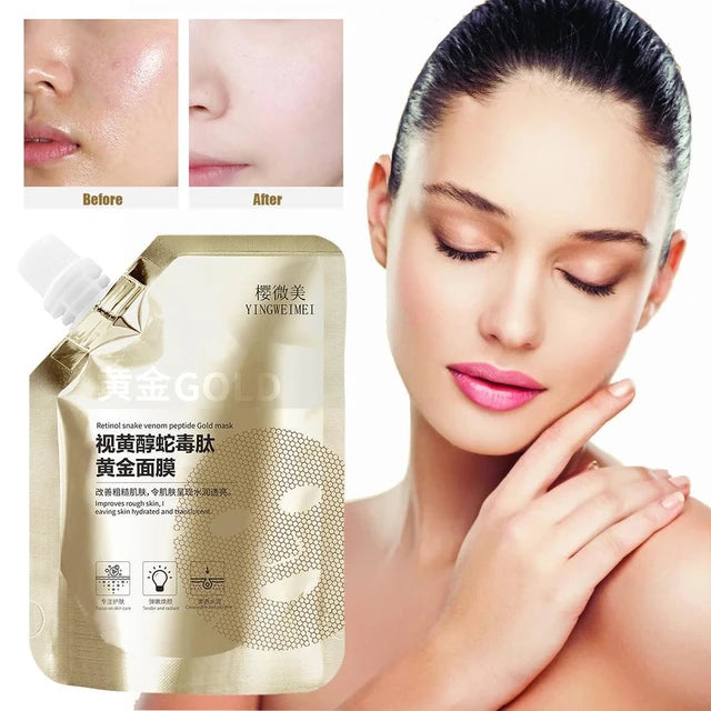 Provate il potere trasformativo della maschera d'oro al retinolo e veleno di serpente!
