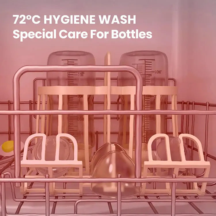 Il ciclo ad alta temperatura da 72℃ è in grado di gestire anche le stoviglie più sporche ed è adatto anche alla pulizia di bottiglie e servizi da tavola.