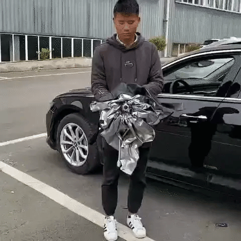 Questo parasole per parabrezza utilizza un materiale in alluminio di alta qualità per bloccare molto calore e riflettere la luce del sole. In questo modo è possibile abbassare efficacemente la temperatura dell'auto e prevenire i danni e l'invecchiamento dell'abitacolo.