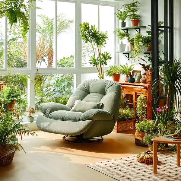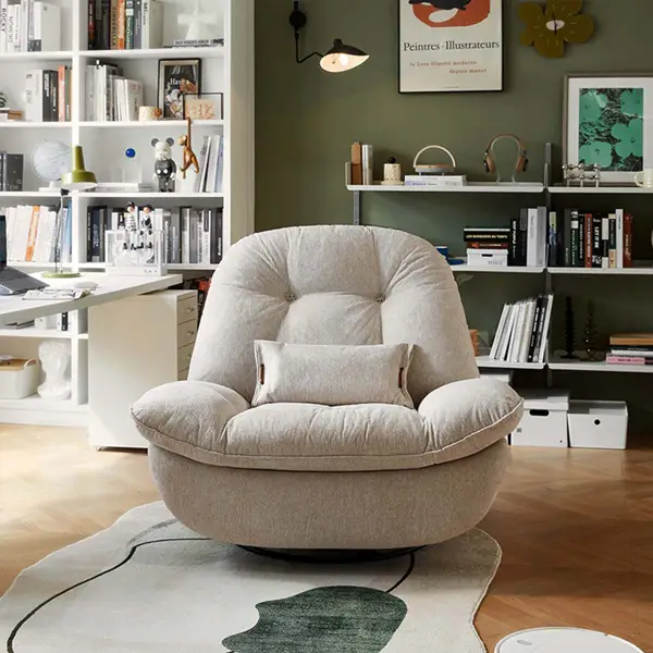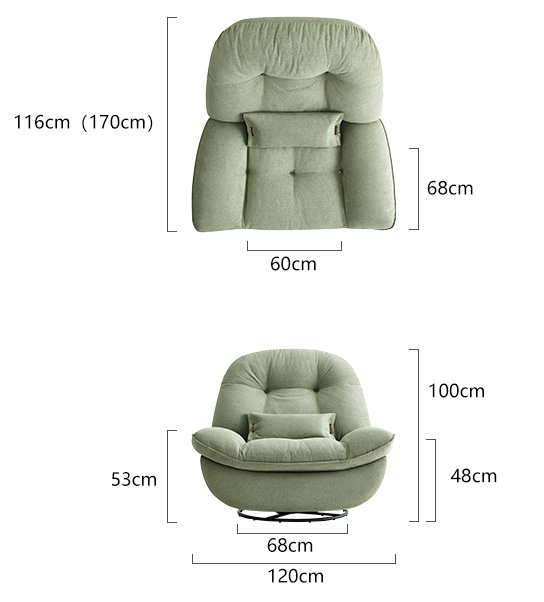 L'imbottitura in piuma d'oca di alta qualità offre una migliore vestibilità e un sostegno morbido. È possibile dondolare delicatamente di 30° avanti e indietro per far riposare il corpo e far vagare la mente. La base rotante a 360° vi permette di guardarvi intorno senza dovervi alzare spesso.