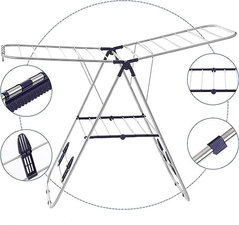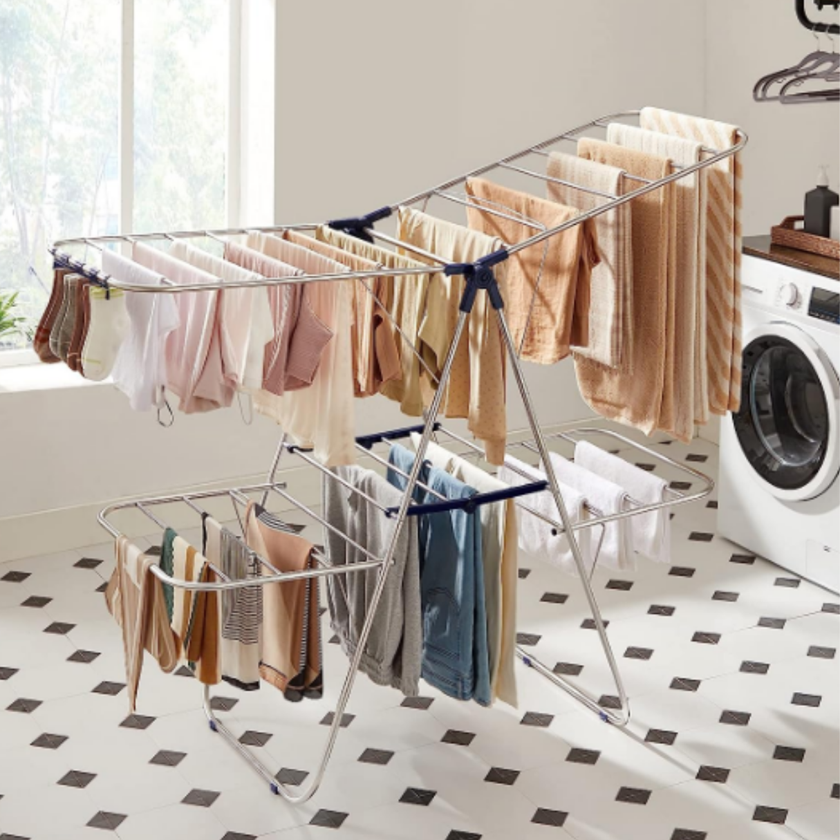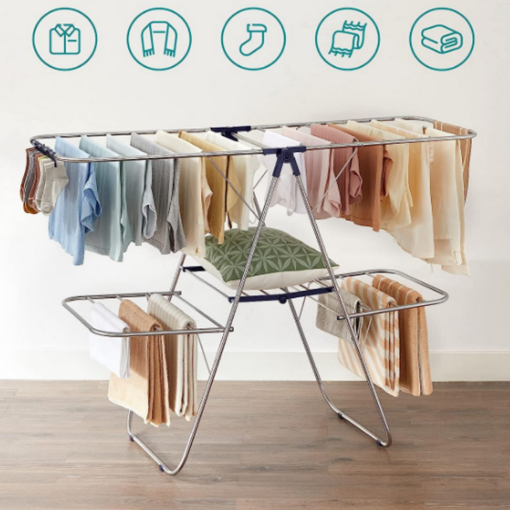 • Materiale di alta qualità - Realizzata in tubi di acciaio inossidabile, l'asciugatrice è particolarmente durevole e resistente agli agenti atmosferici, ideale per l'uso all'aperto e al chiuso; i tappi di plastica aggiuntivi sui piedini garantiscono la stabilità.