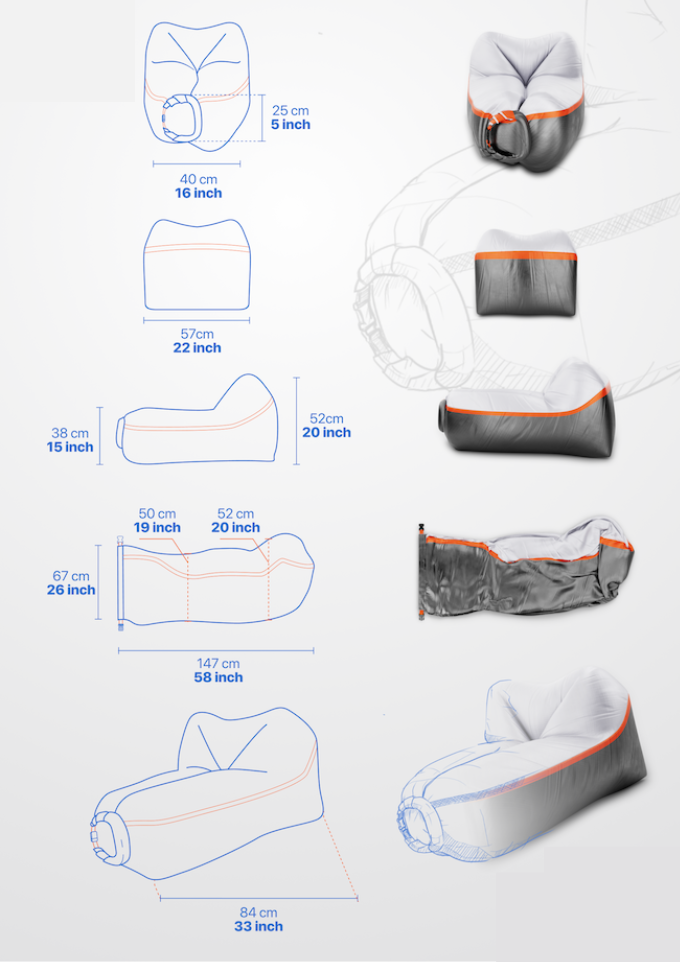 Funzionalità Doppia: Serve sia come cuscino per il collo che come salotto gonfiabile.