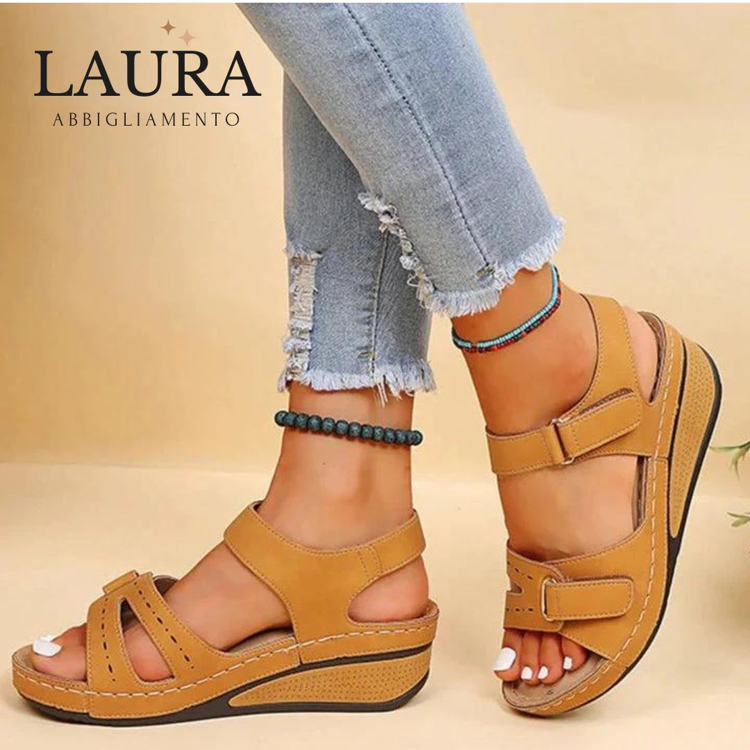 Il punto forte di questi sandali è l'elegante zeppa, sapientemente progettata per offrire altezza e stabilità. Il design della zeppa rappresenta il perfetto equilibrio tra moda e funzionalità, offrendo un aumento dell'altezza senza compromettere il comfort.
