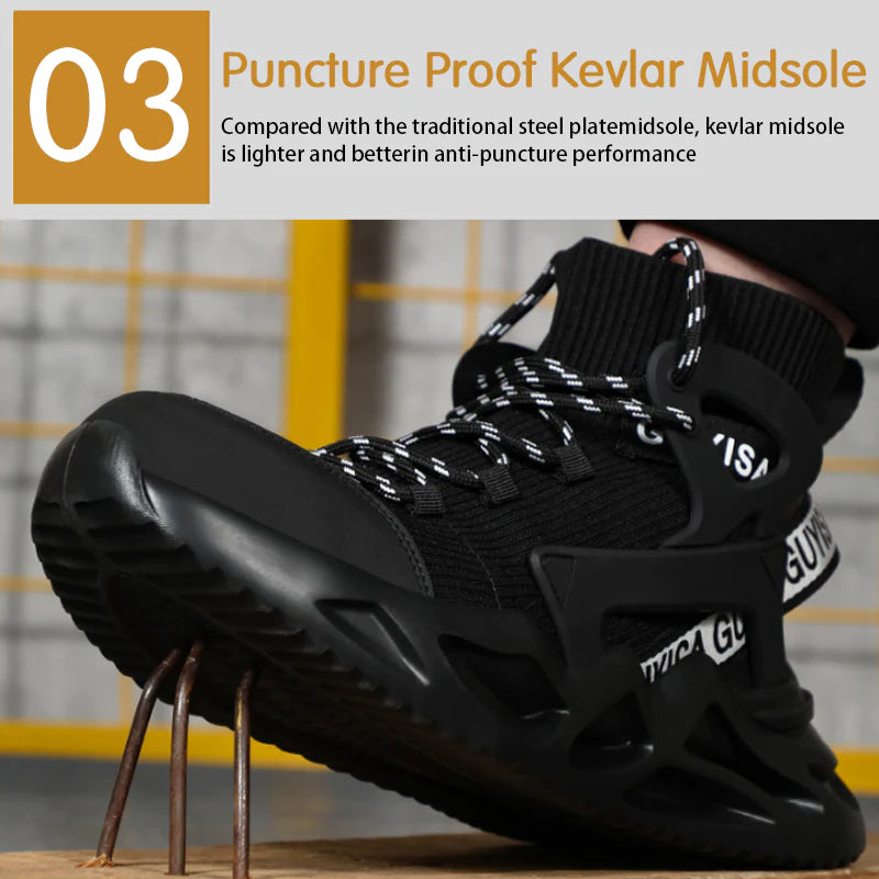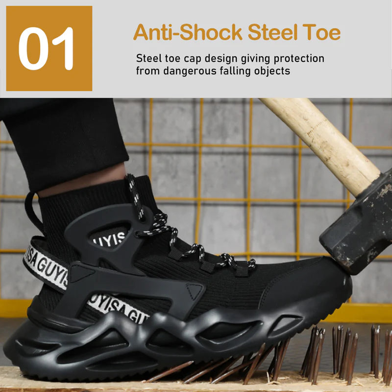 Liberate il vostro potenziale e affrontate ogni compito con fiducia, sapendo che le nostre scarpe di sicurezza Indestructible sono progettate per resistere alle condizioni più difficili. La punta in acciaio, forgiata con acciaio di grado industriale, offre una barriera impenetrabile, salvaguardando i vostri piedi da impatti pesanti, caduta di oggetti e altri potenziali pericoli.