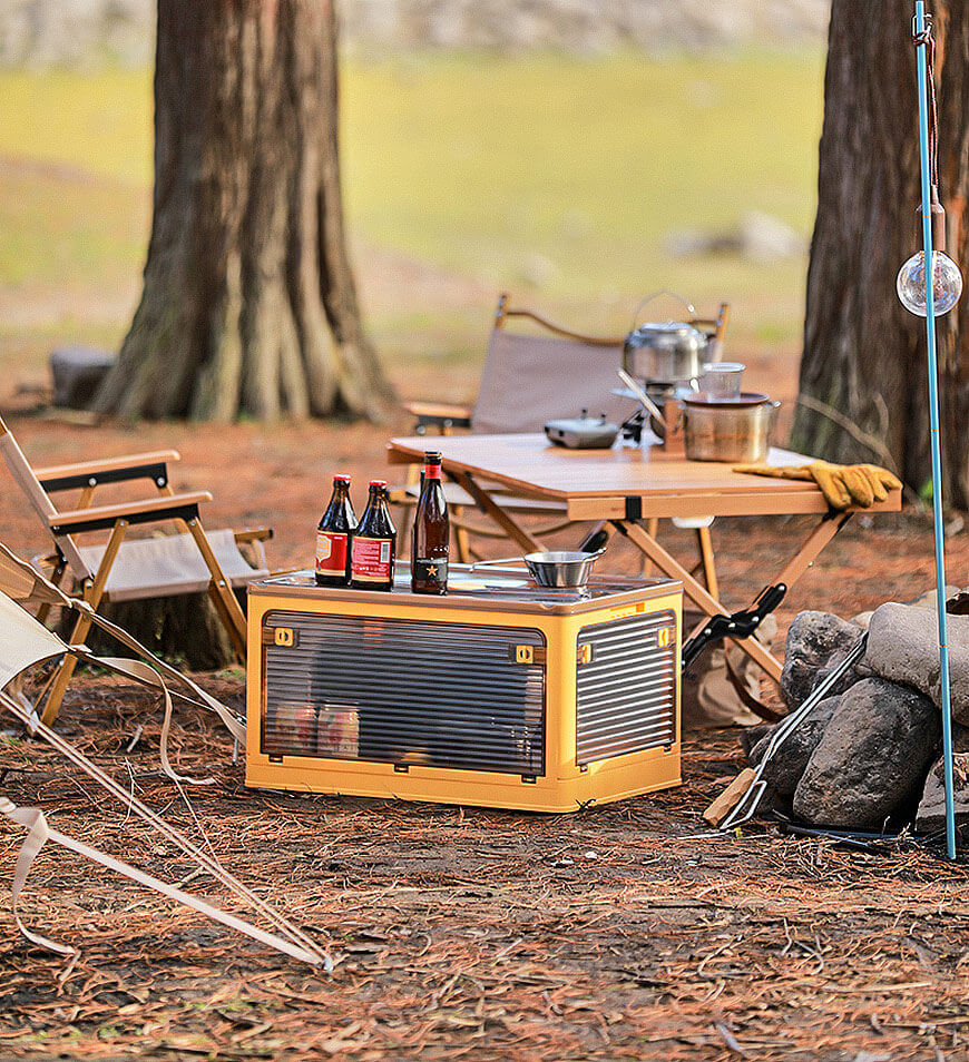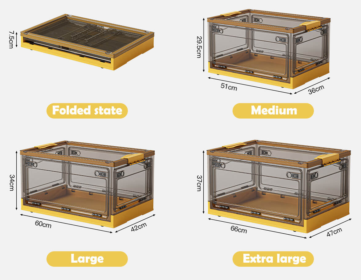 È un contenitore pieghevole che consente di risparmiare spazio, si dispiega quando è in uso e conserva gli oggetti in modo pratico e veloce, si ripiega quando non è in uso e non occupa spazio all'interno.