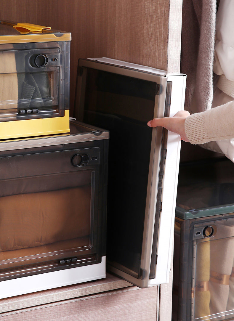 Queste scatole sono realizzate in plastica PP di alta qualità, abbastanza robusta da non essere danneggiata anche se un adulto vi si siede sopra. Sono completamente protette da polvere, tarme e umidità. È possibile conservarle a lungo senza polvere o umidità. Rappresentano una soluzione completa per le esigenze del vostro armadio.