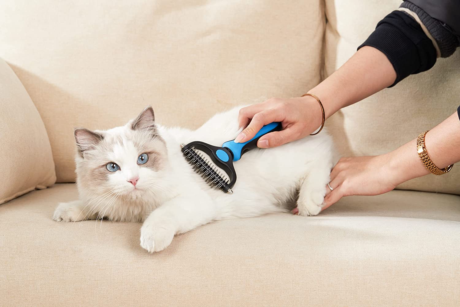 Inizia con il lato a 9 denti per i tappeti e i grovigli più ostinati e termina con il lato a 17 denti per lo sfoltimento e il deshedding. Per ottenere risultati più rapidi e professionali nella rimozione del pelo e nella toelettatura.