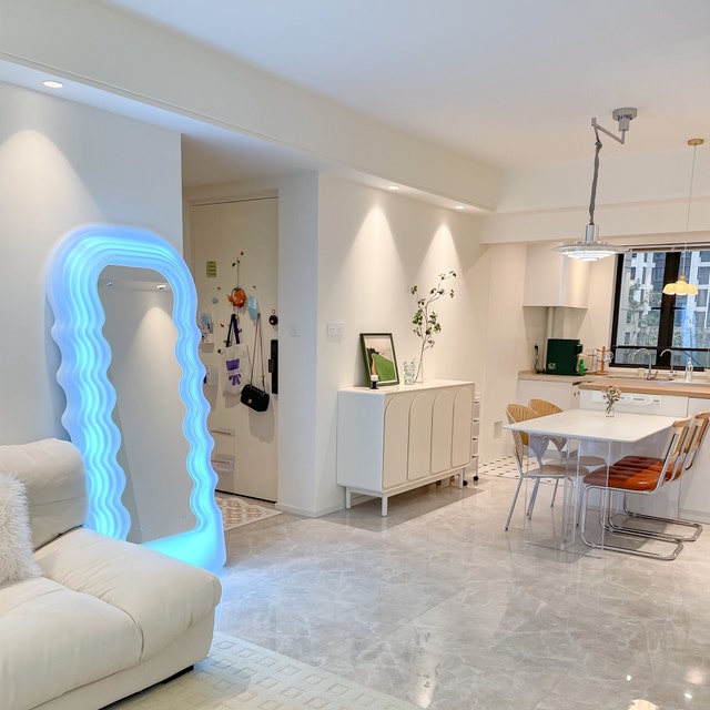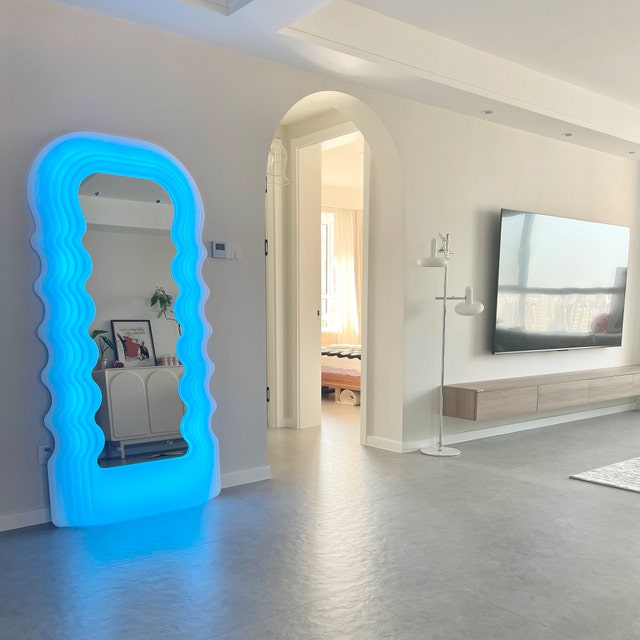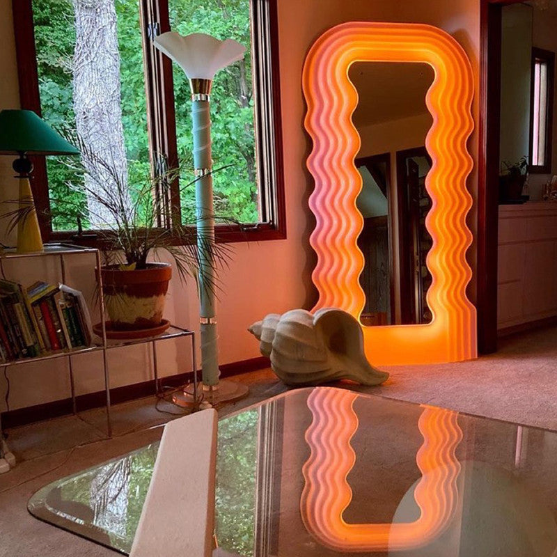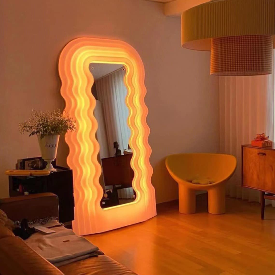Eccellente complemento per il soggiorno, l'ingresso o la camera da letto, questo specchio da terra funge da luce d'atmosfera scultorea. il luogo perfetto per scattarsi un selfie.