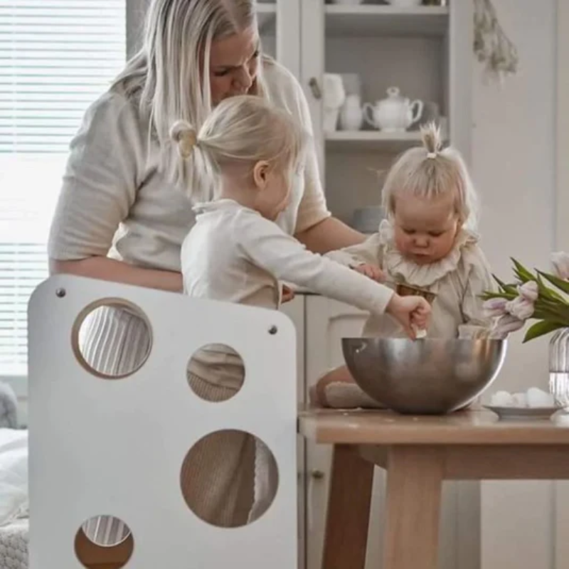 La nostra torre Montessori offre al bambino uno spazio sicuro e stimolante per svolgere in modo indipendente le attività quotidiane come cucinare, fare bricolage o prendere i libri. Favorisce la fiducia in se stesso e il senso di realizzazione.