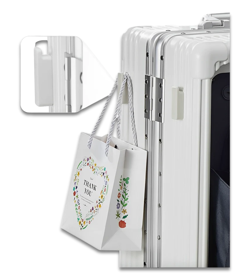 I 4 ganci integrati sul lato della valigia vi permettono di appendere facilmente tutti i vostri bagagli, in modo da non doverli più trasportare in modo pesante.