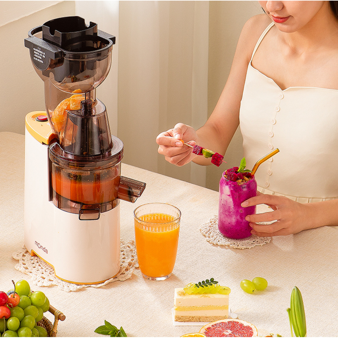 Alimentazione veloce del succo con un grande diametro di 78 mm, la frutta e la verdura vengono pressate direttamente, senza agitazione, a una velocità lenta di 50-80 minuti e rilasciano i nutrienti della frutta e della verdura.